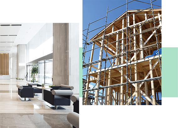 人の集まる公共施設、学生達の青春を作る学校、家族との快適な空間を作り上げるマンションや住宅など人々の未来を担っている建築事業。