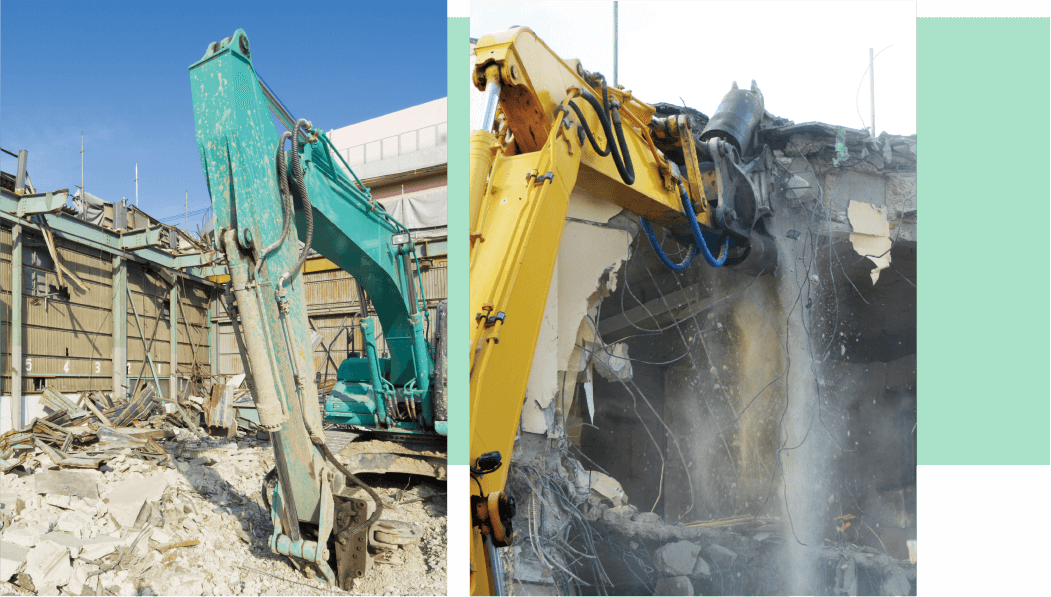 千葉県を中心に一般建築物の解体から店舗、家屋などの解体工事を行っています。 安心・安全はもちろんの事、お客様とのコミュニケーションや近隣の皆様への配慮も忘れずにご満足いただける工事を心がけております